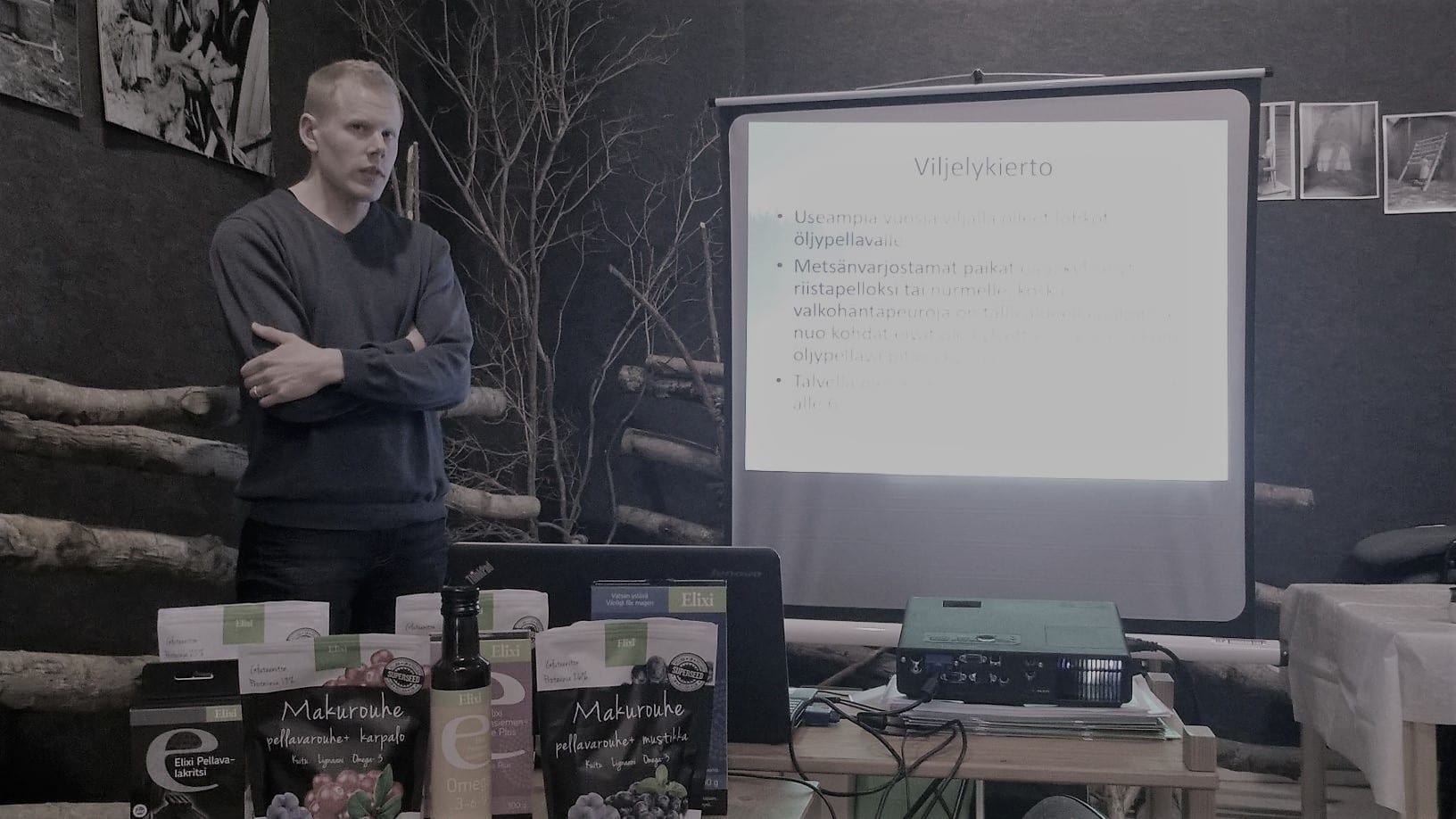 Elixin sopimusviljelijä Perttu Nääppä kertoi kuulijoille kokemuksiaan öljypellavan viljelystä kahdelta erilaiselta kasvukaudelta 2015 ja 2016. Perttu nosti esityksessään esiin muun muassa jääntiviljan torjunnan tärkeyden. Pellavan puinti on sujunut hänellä hyvin, joskin sylkkyjen rikkoutumista voisi hänen mukaansa vielä tehostaa.